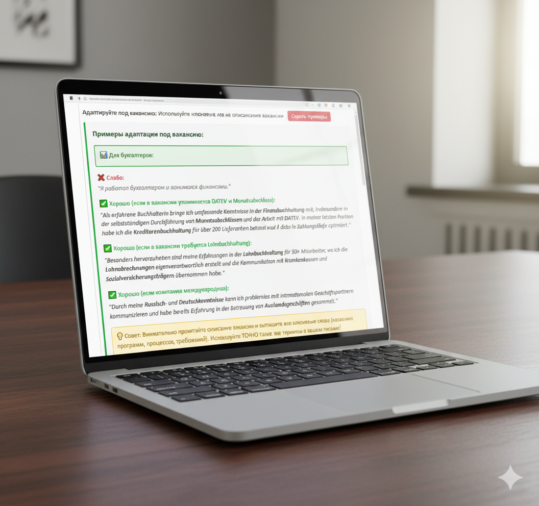 Авторское руководство Елены Васильевой – преподавателя немецкого языка с 20-летним опытом и эксперта по трудоустройству и по подготовке к собеседованию в Германии для русскоязычных соискателей.